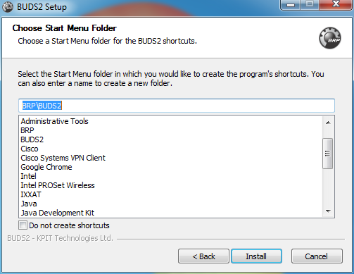 By default, the shortcut is placed in the "BRP/BUDS2" folder.