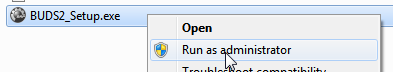 Figure 1 – Running the BUDS2 installer as Windows Administrator