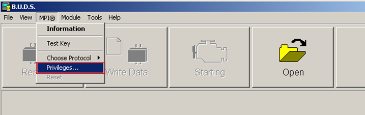 3. In the top menu, select MPI®. In the drop-down list, select Privileges... .