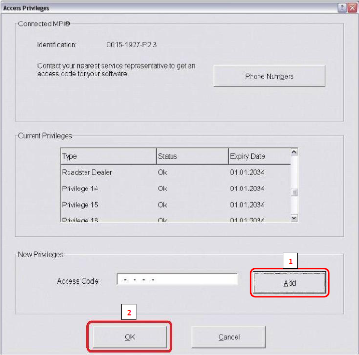 2. Launch B.U.D.S.. Page "Access privileges” will appear.